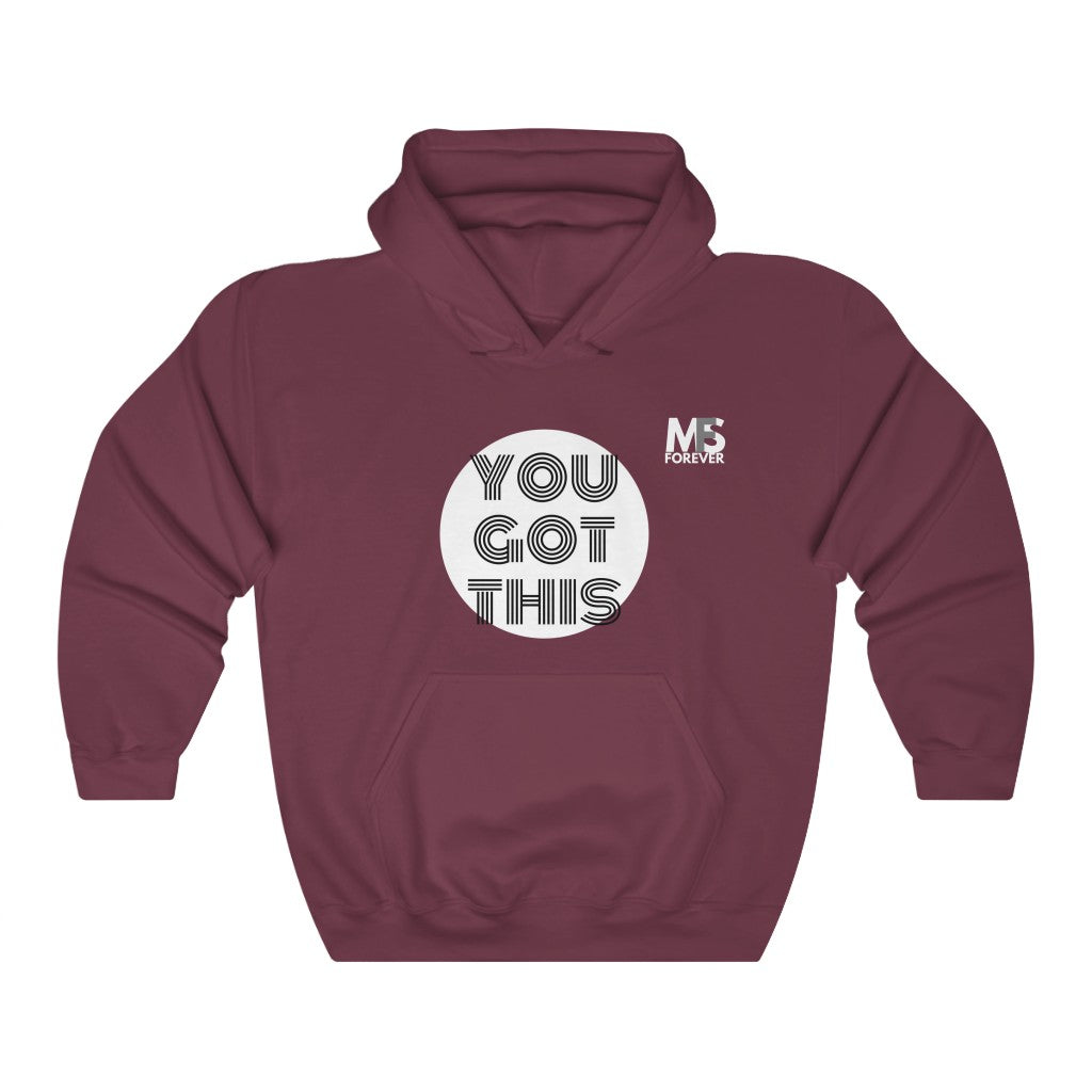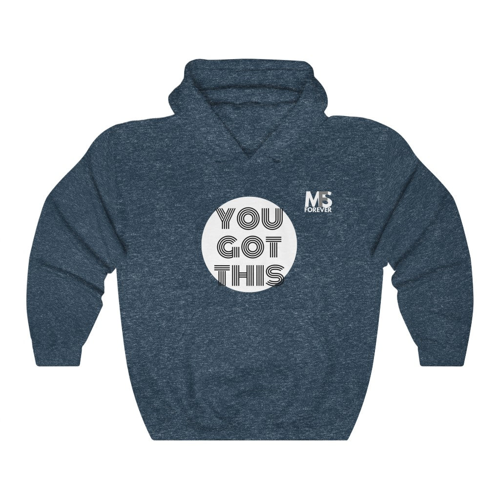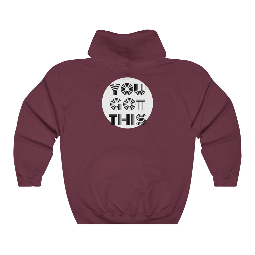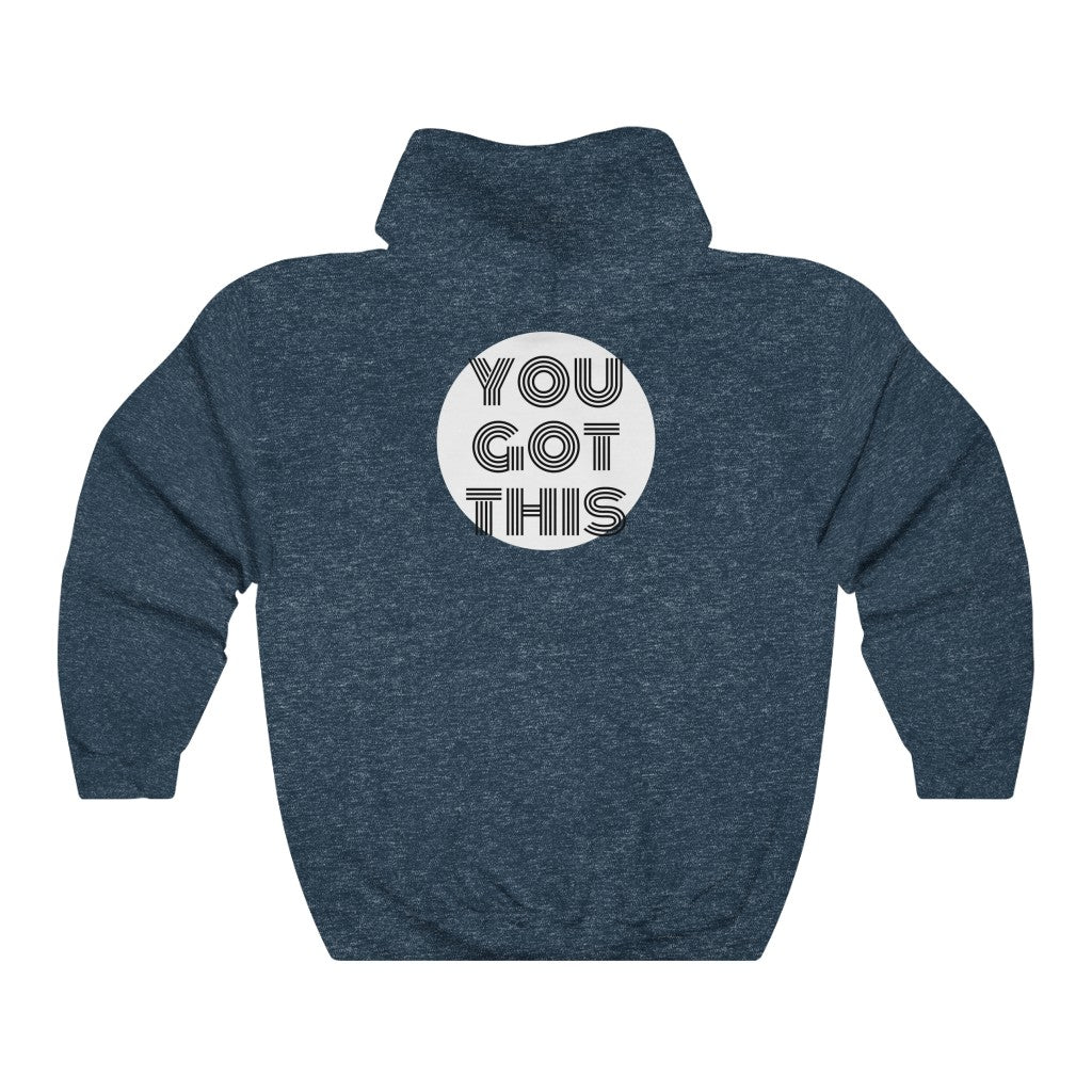 A unisex heavy blend hooded sweatshirt is relaxation itself. The material is a thick blend of cotton and polyester. This makes for a plush, soft feel alongside warmth. It's also a great surface for printing. There are no side seams. A spacious kangaroo pocket hangs in front. The hood's drawstring is the same color as the base sweater.